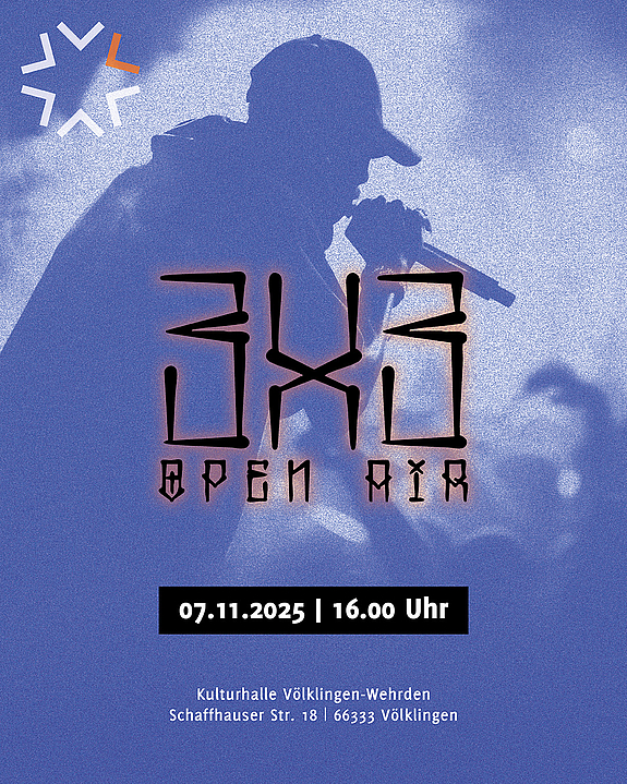 Das Jugendzentrum Völklingen in Trägerschaft des Regionalverbands Saarbrücken veranstaltet am Freitag, den 07. November, erneut das 3x3 Open Air - diesmal allerdings Indoor. Das Konzert beginnt um 16 Uhr in der Kulturhalle Wehrden. Der Eintritt ist wie immer frei. Regionalverbandsdirektorin Dr. Carolin Lehberger: „Die jungen Menschen, die das Open-Air-Konzert bereits zum fünften Mal zusammen mit unserem Juz organisieren, gestalten die Kulturszene vor Ort aktiv mit. Sie übernehmen so Verantwortung für die Lebensqualität junger Menschen in ihrer Stadt. Dafür meinen herzlichen Dank!“