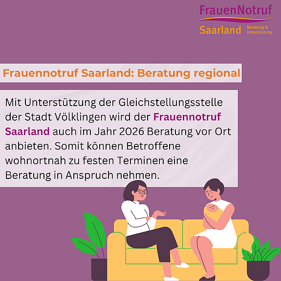 Unterstützung vor Ort: „FrauenNotruf Saarland“ 2026 in Völklingen