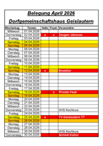 - Belegung Dorfgemeinschaftshaus Geislautern April 2026