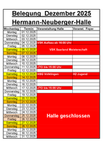 Die Hermann-Neuberger-Halle in Völklingen gehört zu den größten Hallen im Saarland. Sie wird als Sport- und Veranstaltungshalle genutzt. Je nach Bestuhlungsplan bietet diese bis zu 3500 Personen Platz. Zusätzlich zu der eigentlichen Halle (40 x 50m) stehen ein großzügiges Foyer, ein Gymnastiksaal (75 m²) und 8 Umkleiden zur Verfügung.