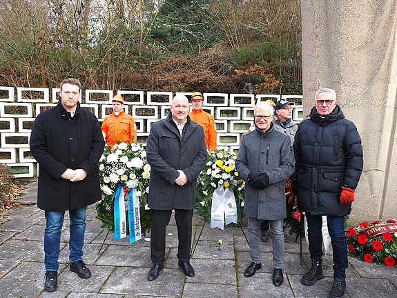 Gemeinsam mit Bürgermeister Christof Sellen nahm der Oberbürgermeister an der Kranzniederlegung am Barbara-Ehrenmal, mit anschließendem Gedenkgottesdienst in der Pfarrkirche Christkönig in Luisenthal, teil.