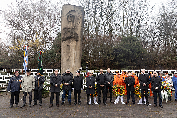 Gemeinsam mit Bürgermeister Christof Sellen nahm der Oberbürgermeister an der Kranzniederlegung am Barbara-Ehrenmal teil. Im Anschluss fand ein Gedenkgottesdienst in der Pfarrkirche Christkönig in Luisenthal statt.
