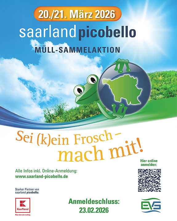 Am 20. und 21. März ist es wieder soweit: Das Saarland soll picobello sauber werden! Der Entsorgungsverband Saar (EVS) lädt wieder alle Menschen im Saarland ein, am landesweiten „Frühjahrsputz für die Umwelt“ im Rahmen der Kampagne „saarland picobello“ mitzuwirken.